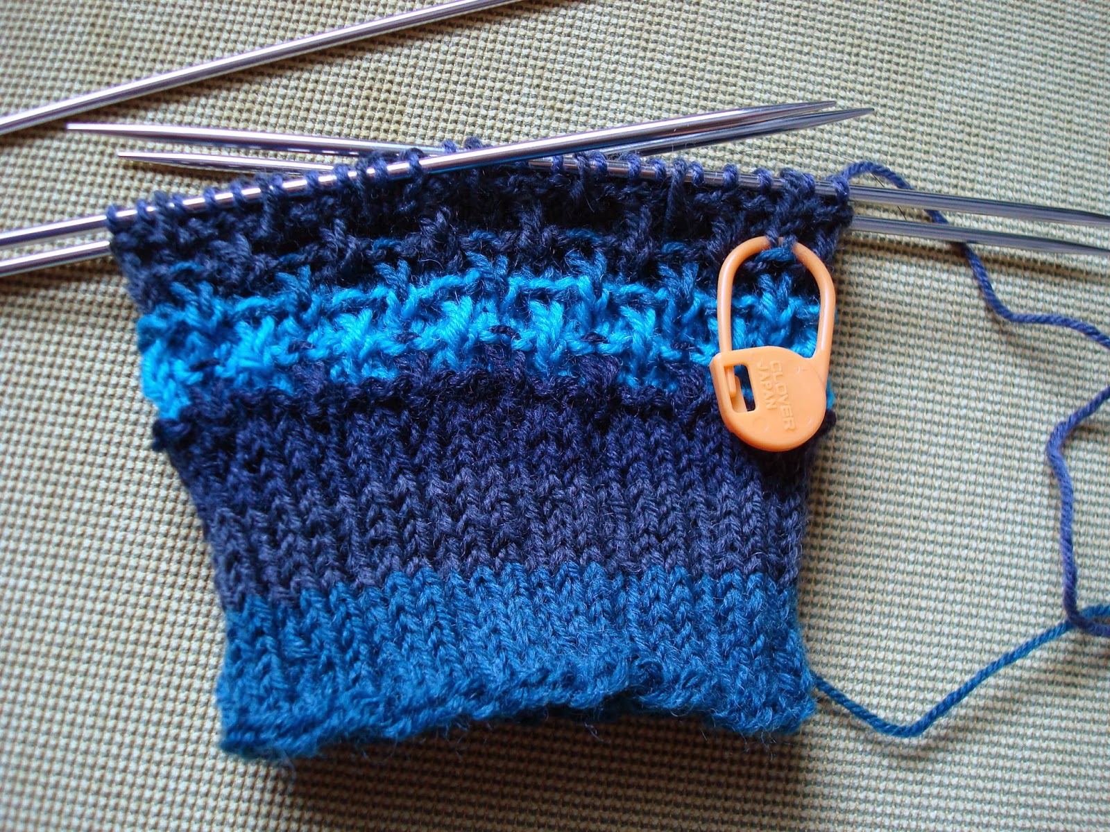 Solidly into the main part of the leg pattern now, readers. I have a feeling that the updates for the next few post will be very similar. Maybe I should start holding it up to an object for measuring the growth each week. When I got a puppy when I was 12, we took a picture of her every week next to the same stool to see how much she grew. While doing the same thing with my sock might not be as adorable (that's up for debate), I think it might keep things interesting.